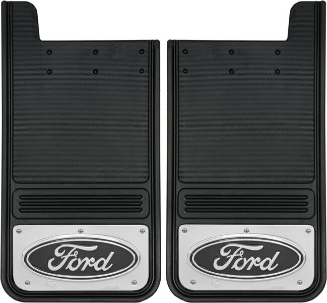 The Gatorback Ford logo mudflap is a heavy duty universal mud flap designed for full-size Ford pickup trucks. Now available with 7075-T6 aluminum self-drilling screws.Universal fit