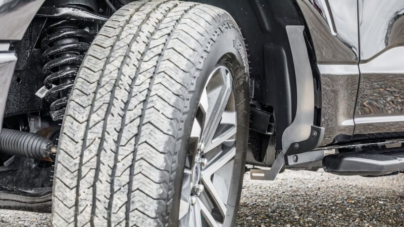 Vehicle specific mounting brackets allow for easy installation of Gatorback Universal Offset Mud Flaps.