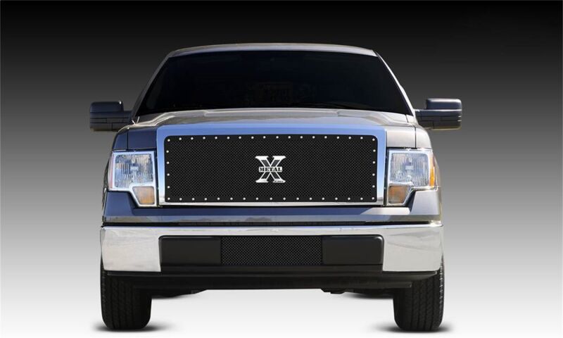X-Metal Grilles are designed for the extreme truck and SUV enthusiast looking to make a bold statement. X-Metal Series Grilles feature an aggressively studded perimeter surrounding the formed heavy gauge mesh. Each stud is embedded with X-Metal branding and every grille includes our patented X-Metal logo. This X-Metal Grille is made of mild steel and comes with chrome studs and black powdercoat finish, most X-Metal Grilles are also available with black finish and black studs (Stealth X-Metal Series). Our uncompromising quality begins with advanced 3D CAD supported engineering and design. All our products undergo rigorous testing for fit, finish, drivability and durability. Each part starts with a custom jig using laser cut materials, precision TIG welding and meticulous assembly and quality control. This dedication of American craftsmanship shows in every product that leaves our facility in California. All our black powder coated grilles go through a multi-stage process, first they are sandblasted to prepare the surface for our epoxy primer base coat. Second, they are cleaned to remove contaminants from the sandblast process. Then an epoxy primer base coat is applied and cured to seal the entire surface, finally the color top coat is applied over the primer and cured to provide long lasting protection and a high-quality OEM finish.