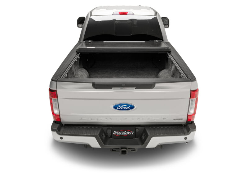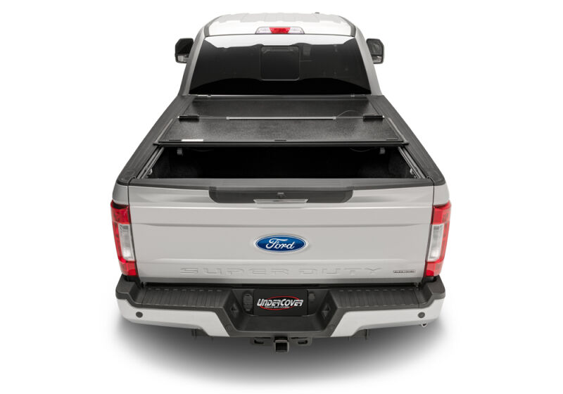 Introducing the next generation of folding covers -- the UnderCover Flex folding cover. Flex combines the best of both worlds, the security of a hard locking cover and convenience of a soft roll up cover. Constructed from the best materials available, Flex will withstand the abuse Mother Nature throws at it and keep coming back for more. Low Profile -- Ultra-low profile design rests inside the bed rails allowing for a very sleek look. Full Access -- Built in prop rods secure the cover allowing your truck to be driven with the cover fully open. Easy Removal -- Entire cover can be removed in seconds with no tools needed. Secure Design -- Plastic buckles and straps are included to secure the panels in the partially open position. FRP Composite Panels -- Lighter, stronger and higher dent resistance than aluminum. Weather Resistant -- Rubber seals and drain tubes channel water away from and out of the bed. Easy Clamp-on design. No other folding cover can match the Flex for versatility, security and function. Covered or uncovered, always an option with UnderCover.