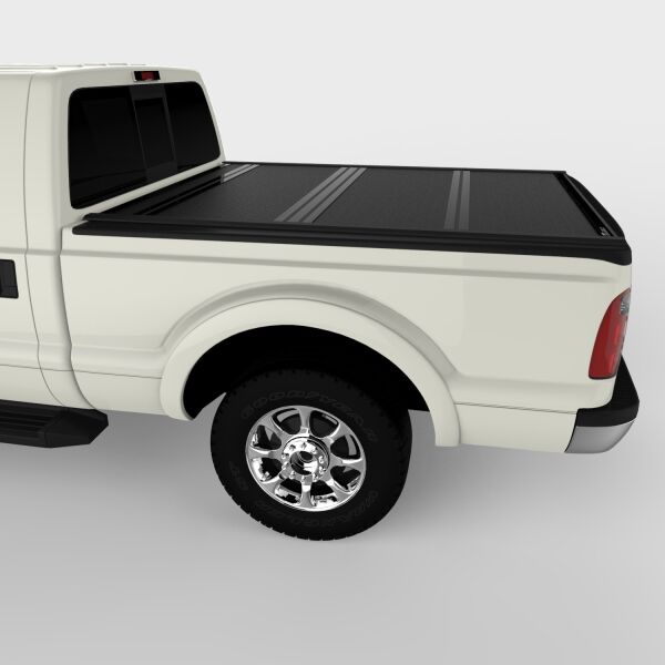 Introducing the next generation of folding covers -- the UnderCover Flex folding cover. Flex combines the best of both worlds, the security of a hard locking cover and convenience of a soft roll up cover. Constructed from the best materials available, Flex will withstand the abuse Mother Nature throws at it and keep coming back for more. Low Profile -- Ultra-low profile design rests inside the bed rails allowing for a very sleek look. Full Access -- Built in prop rods secure the cover allowing your truck to be driven with the cover fully open. Easy Removal -- Entire cover can be removed in seconds with no tools needed. Secure Design -- Plastic buckles and straps are included to secure the panels in the partially open position. FRP Composite Panels -- Lighter, stronger and higher dent resistance than aluminum. Weather Resistant -- Rubber seals and drain tubes channel water away from and out of the bed. Easy Clamp-on design. No other folding cover can match the Flex for versatility, security and function. Covered or uncovered, always an option with UnderCover.