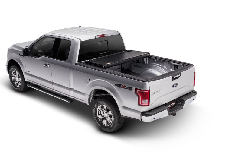 Introducing the next generation of folding covers -- the UnderCover Flex folding cover. Flex combines the best of both worlds, the security of a hard locking cover and convenience of a soft roll up cover. Constructed from the best materials available, Flex will withstand the abuse Mother Nature throws at it and keep coming back for more. Low Profile -- Ultra-low profile design rests inside the bed rails allowing for a very sleek look. Full Access -- Built in prop rods secure the cover allowing your truck to be driven with the cover fully open. Easy Removal -- Entire cover can be removed in seconds with no tools needed. Secure Design -- Plastic buckles and straps are included to secure the panels in the partially open position. FRP Composite Panels -- Lighter, stronger and higher dent resistance than aluminum. Weather Resistant -- Rubber seals and drain tubes channel water away from and out of the bed. Easy Clamp-on design. No other folding cover can match the Flex for versatility, security and function. Covered or uncovered, always an option with UnderCover.
