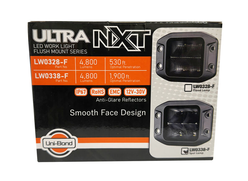 ULTRA NXT 3" x 3" Flush Mount LED Wide Flood Lamp Off-Road LightUni-Bond Lighting#UNILW0338-F