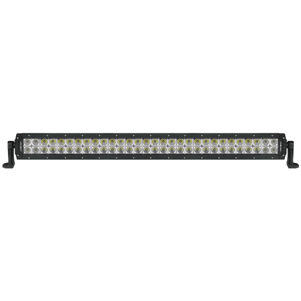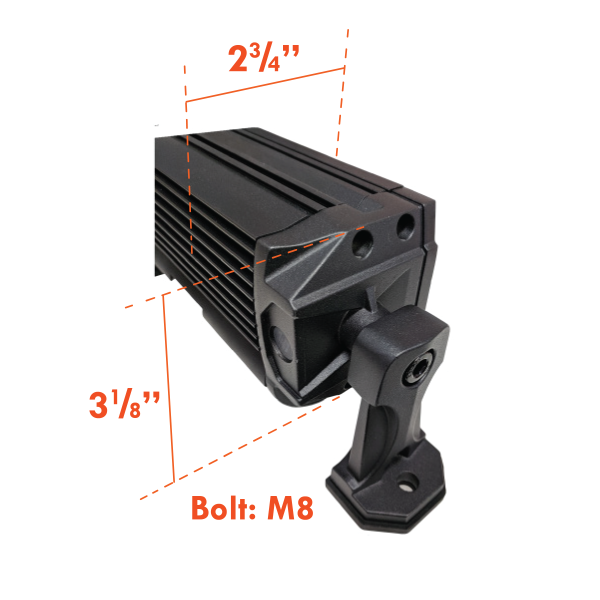 Light bar w/double row LED lights. Flood/Spot combo w/high UV resistant polyester powder coated aluminum housing and polycarbonate lens. Ideal for 12-30V applications. Includes reverse voltage protection and side brackets. Bottom bracket and plug and go harness sold separately. 3-1/8 in. H x 2-3/4 in. D lamp dimension w/o brackets. IP69K RoHs