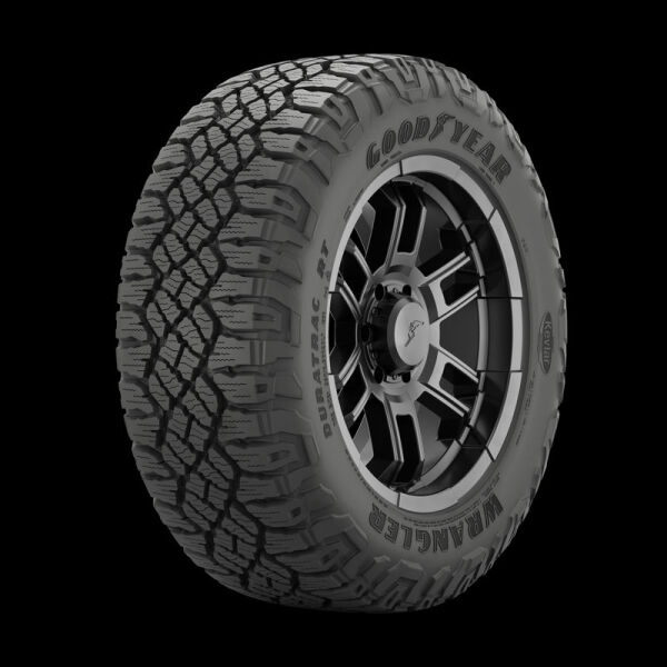 Introducing the Goodyear Wrangler DuraTrac RT, our latest addition to the Wrangler lineup, designed for light trucks and SUVs. This tire offers a balance of durability and grip for all-season, all-terrain use. It's stamped with Mud and Snow (M+S) and 3 Peak Mountain Snowflake (3PMSF) ratings, making it suitable for severe snow conditions in the US and Europe. Featuring Kevlar protection and a three-ply sidewall, it's designed for off-road adventures, resisting punctures and tears. With a proven tread pattern for enhanced grip, this versatile tire handles any road or trail, rain or shine, making it perfect for your next adventure.